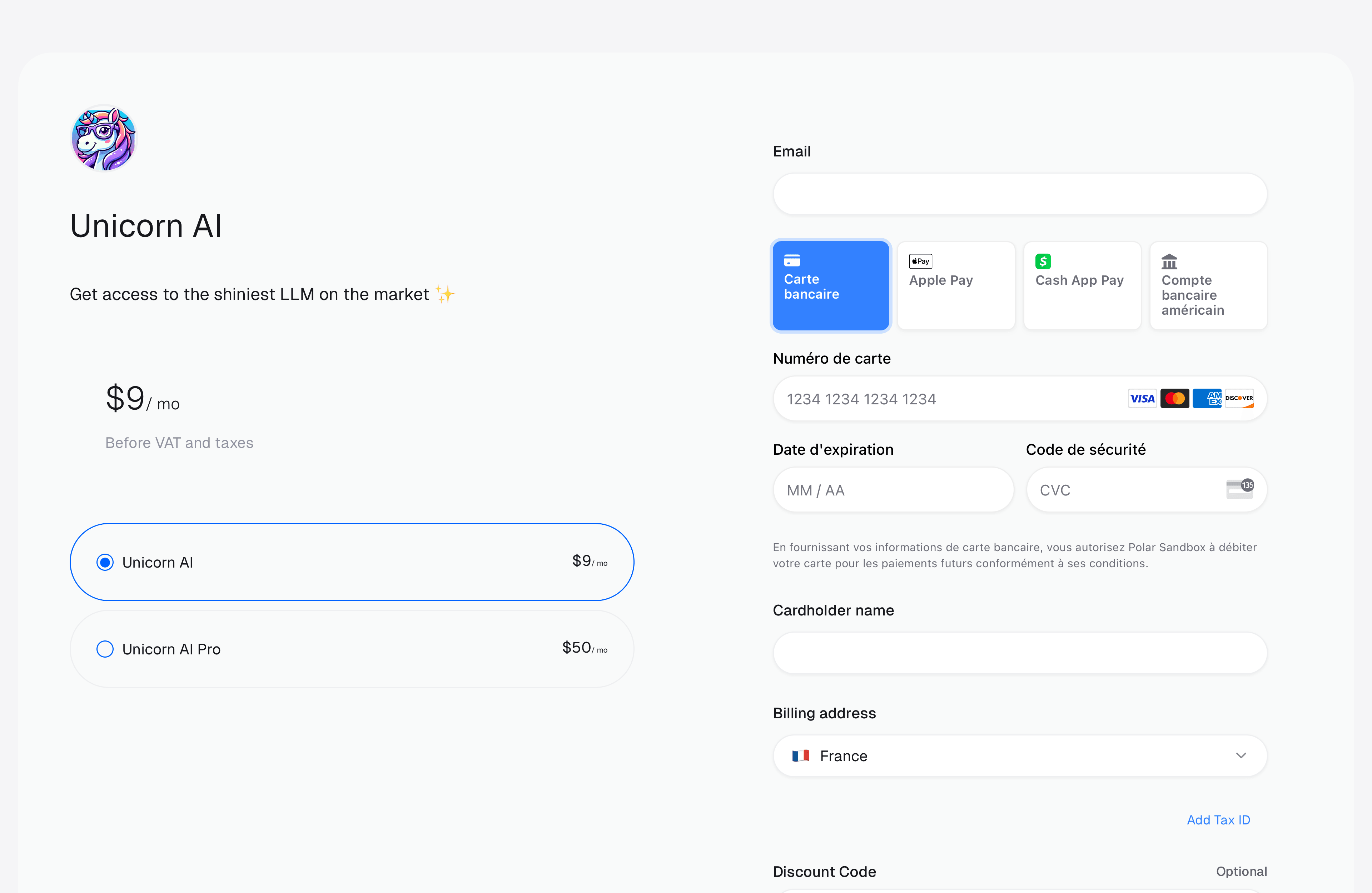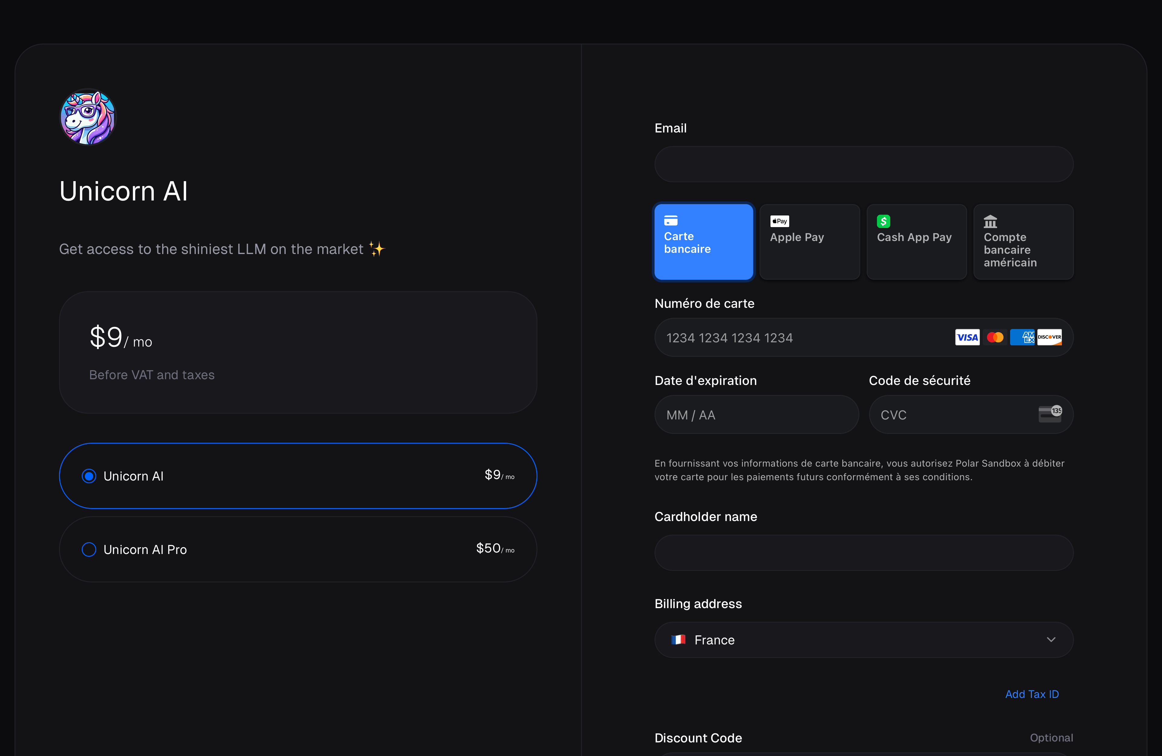 We’ve released big changes to how we handle products and pricing, allowing us to support a unique approach to what the industry typically calls variants 🔥We believe having a single product with multiple pricing models and benefits adds unneccessary complexity to the user and to the API. Instead, we chose to treat everything as a product, giving you maximum flexibility about the pricing and benefits you want to offer.Thus, we introduce support for multiple products at checkout, allowing customers to switch between them before purchasing. Typically, you can offer a monthly and a yearly product, with specific pricing and benefits for each.