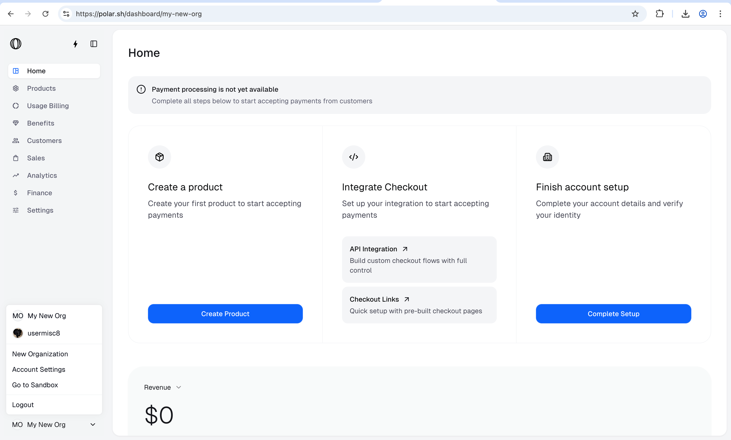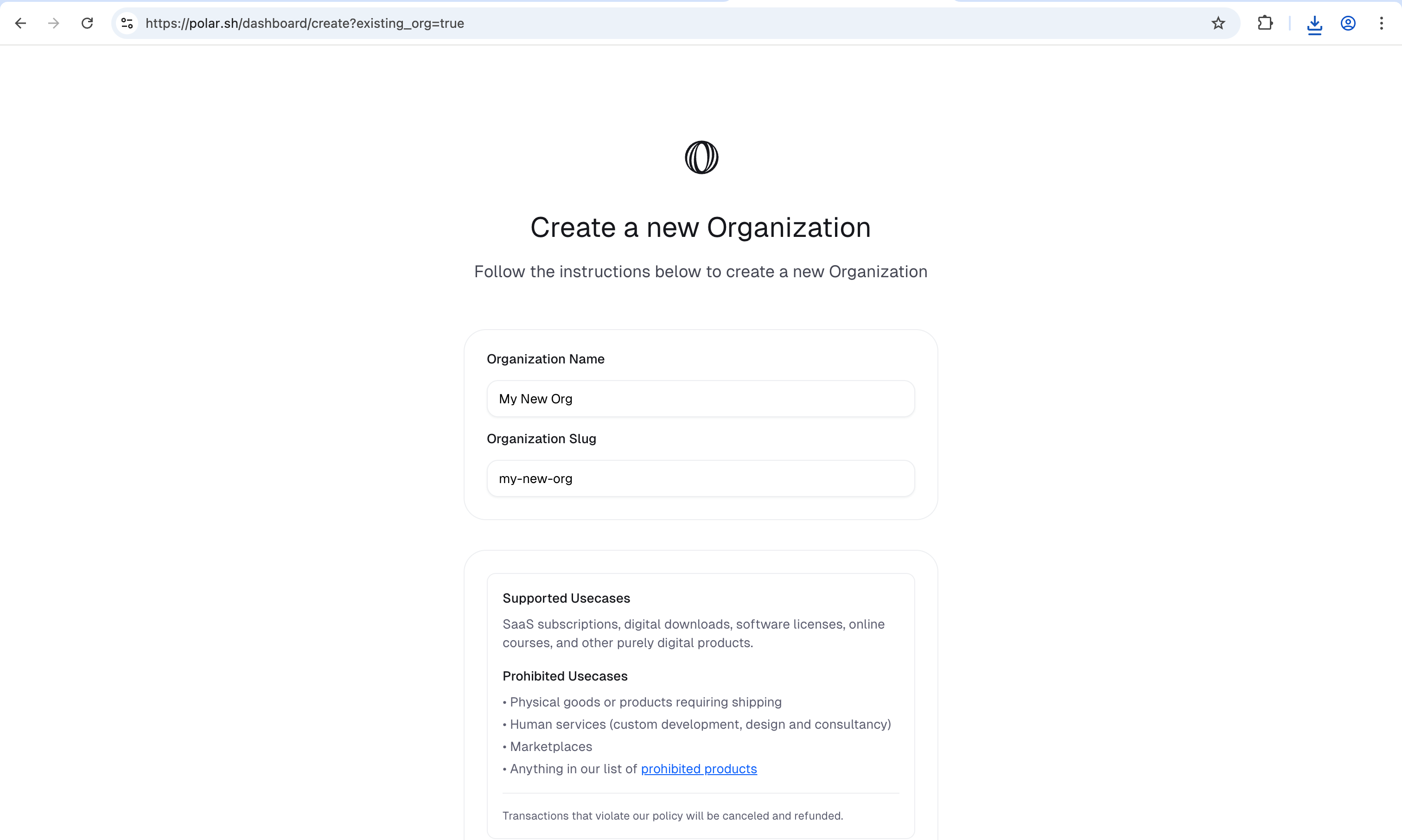Create your first organization