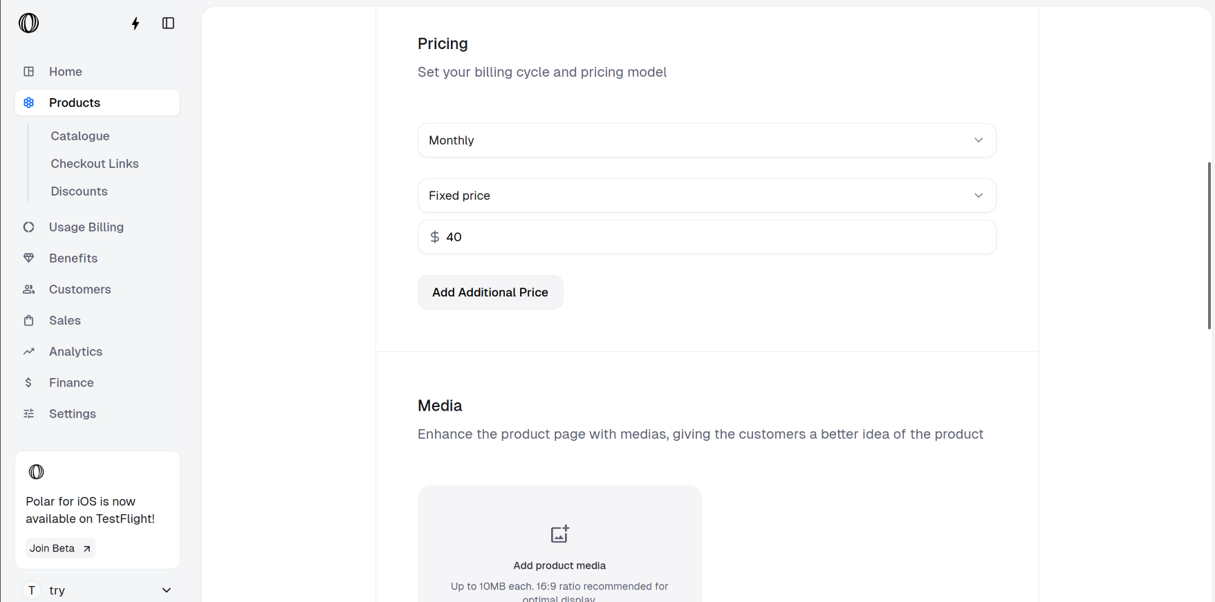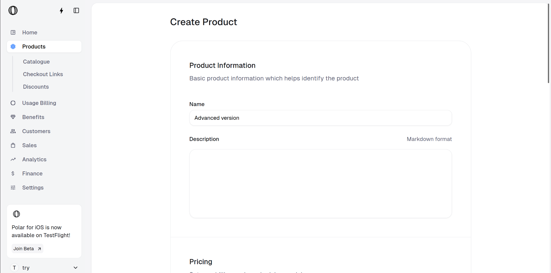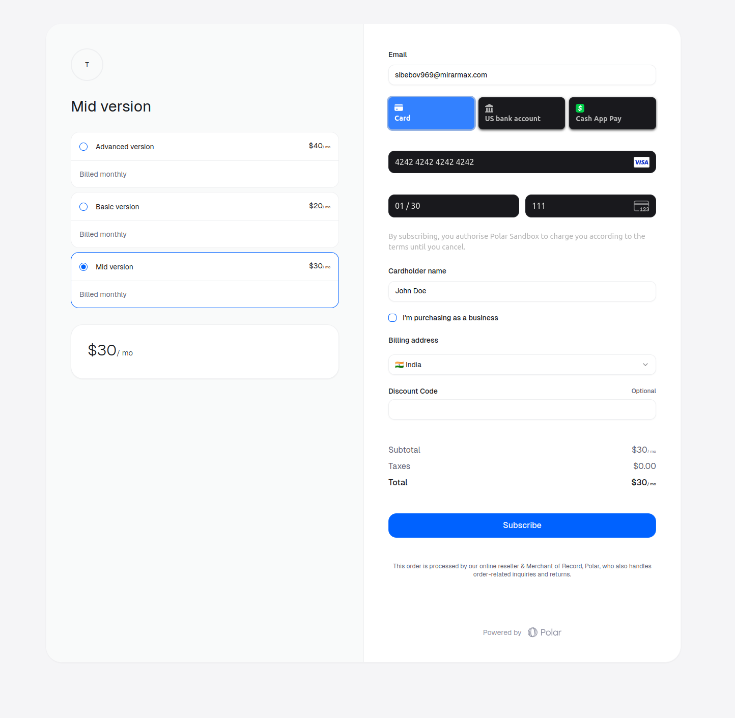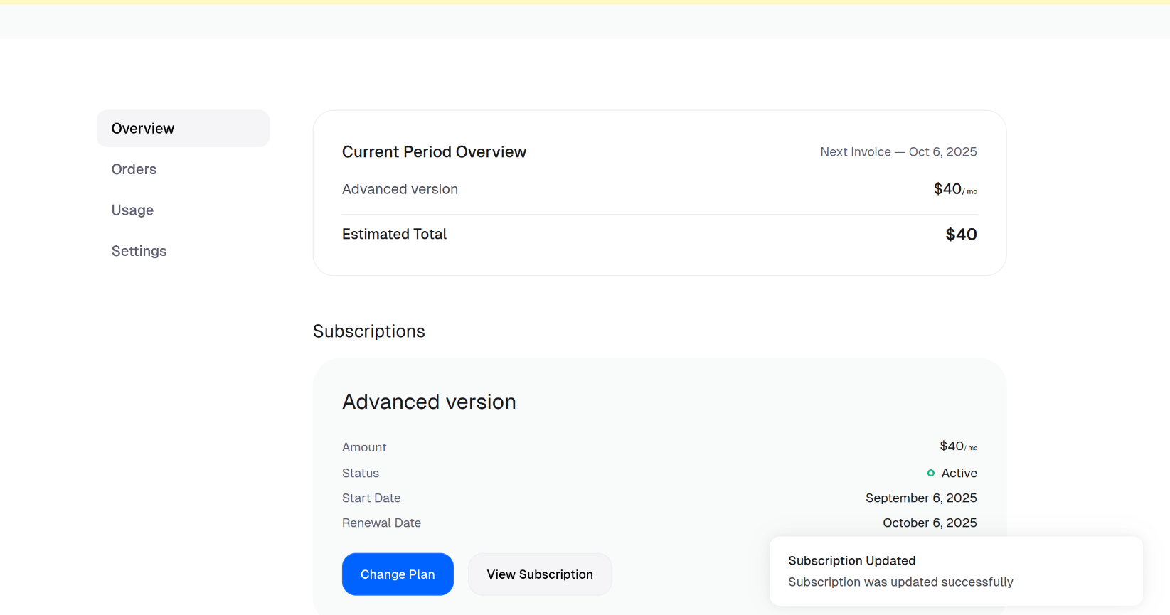 - Advanced version: We create a monthly subscription product named Advanced version with cost $40.
