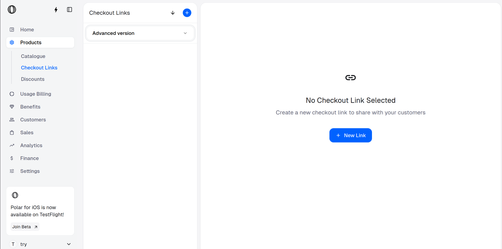 In the Spaire dashboard sidebar, navigate to Products > Checkout Links.