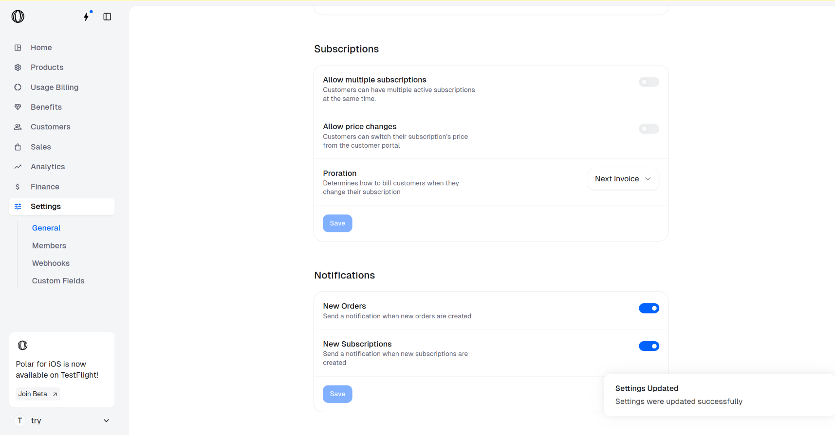 https://www.spairehq.com/dashboard/${org_slug}/settingsScroll down to Subscriptions section.