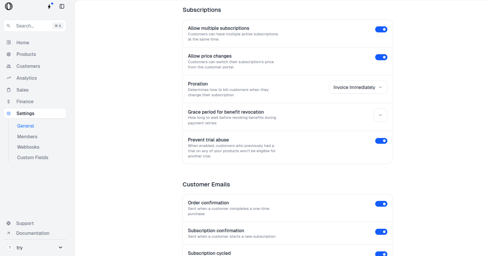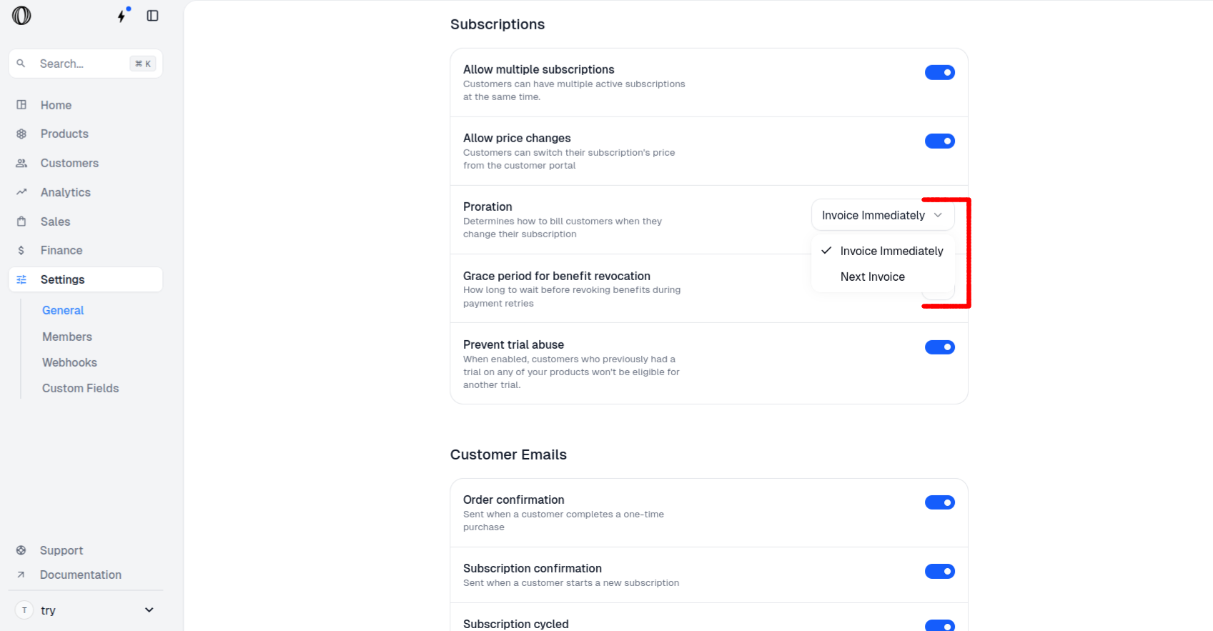 You can change the default proration behavior using the Update Organization API.How to prorate when updating subscription via API