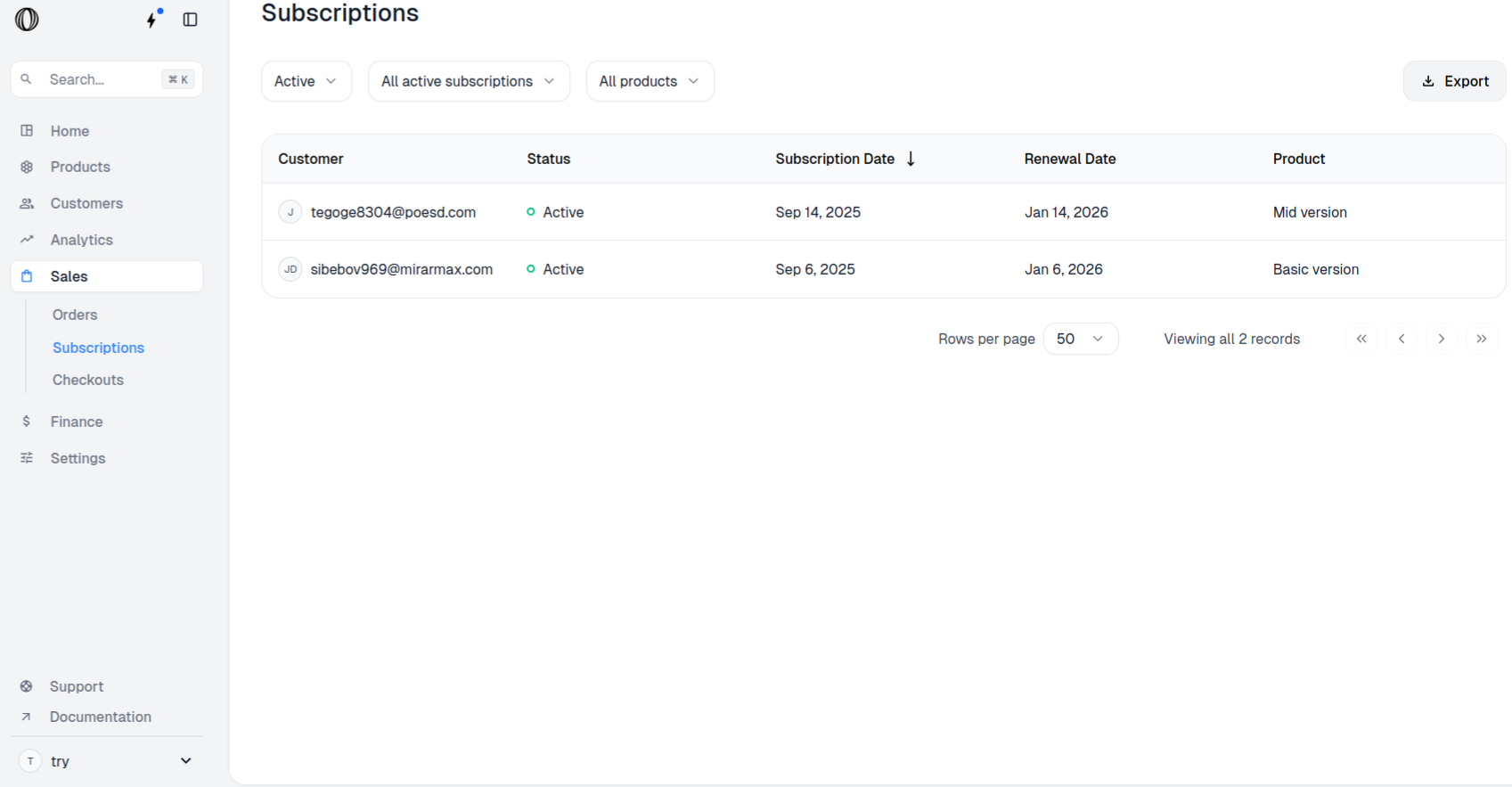 - In the Spaire dashboard sidebar, navigate to Sales > Subscriptions for your organization.