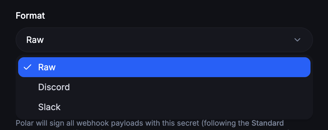 If you paste a Discord or Slack Webhook URL, the format will be automatically selected.